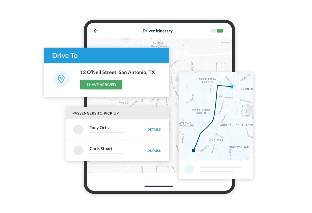 Cloud-based mobile app for transit drivers, providing real-time routing, schedule optimization, and automated dispatch for on-demand and paratransit services.