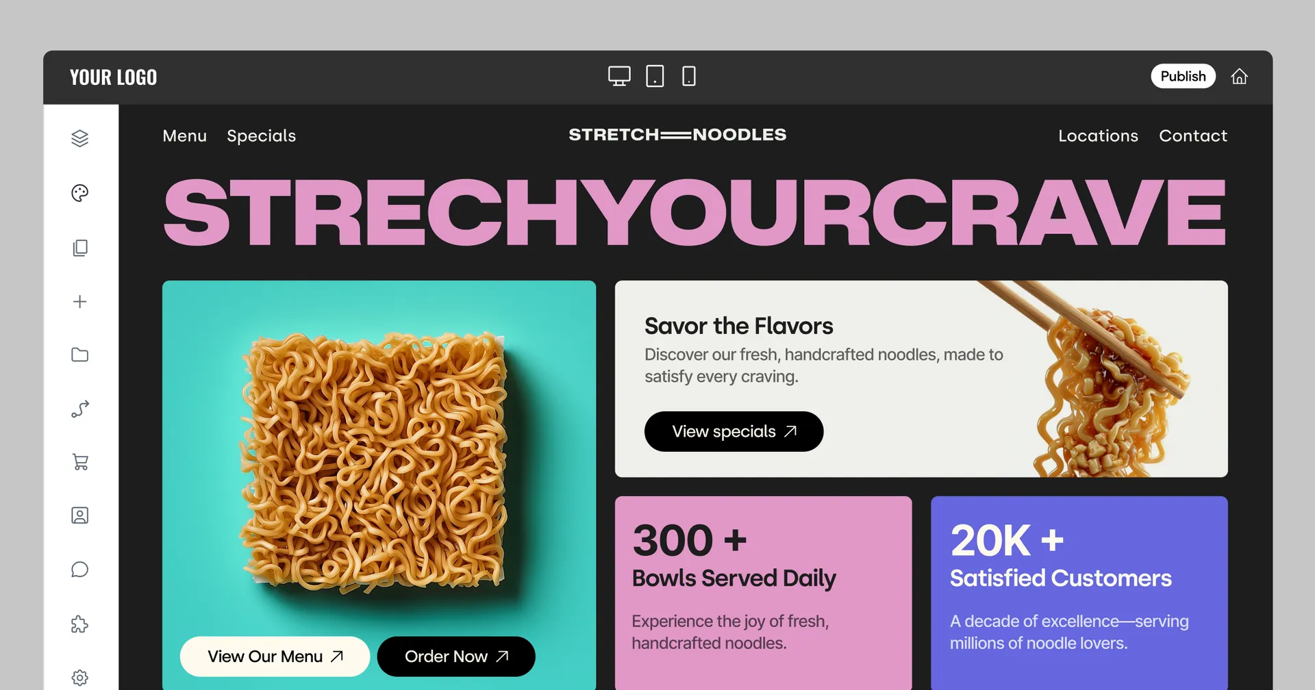 - Drag-and-drop editor with responsive design and global styling controls