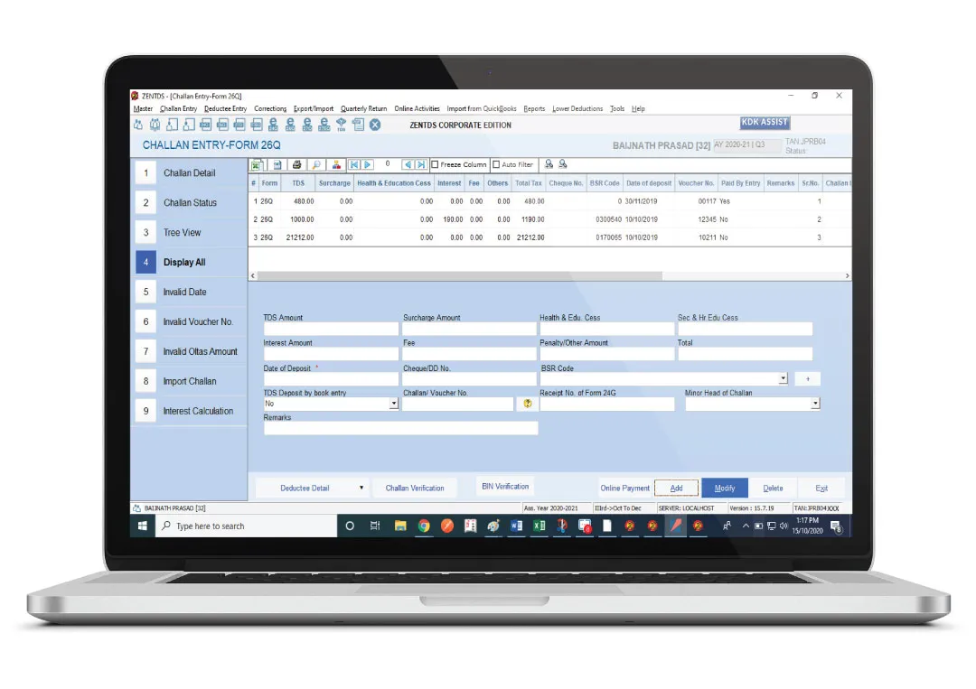 - End‑to‑end e‑TDS filing, including automated challan verification and online correction workflows.