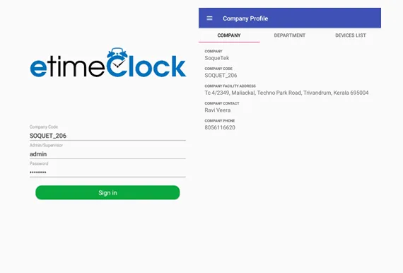 What is e-TimeClock? e-TimeClock offers time capture solution comes with a standard installation of an Android tablet mobile device at the workplace and/or as a mobile app on remote users’ smartphones. With the tablet version, these devices can be installed at various points of check in/out at the warehouse or retail facilities. For remote users, smartphone app can be launched to capture the checking in and out at the location of their remote work. The solution is highly reliable and is built to work in the offline mode, should there be a lapse in network connectivity. Additionally, it captures the location coordinates of the actual check ins and check outs as well as the employees’ facial image to avoid proxy time logging transactions.