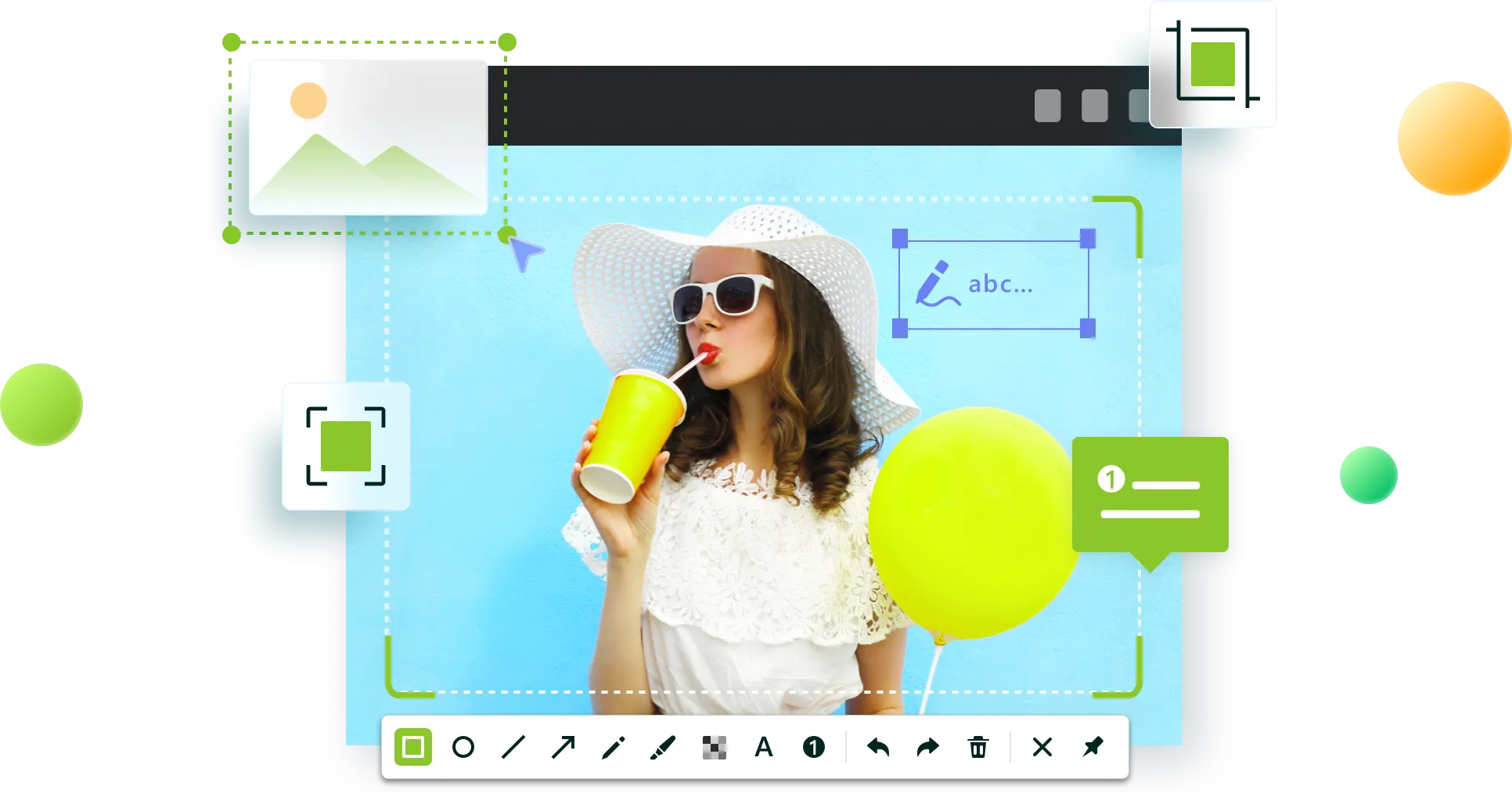A desktop screenshot tool for capturing full screens, windows, or selected areas with basic annotation support.
