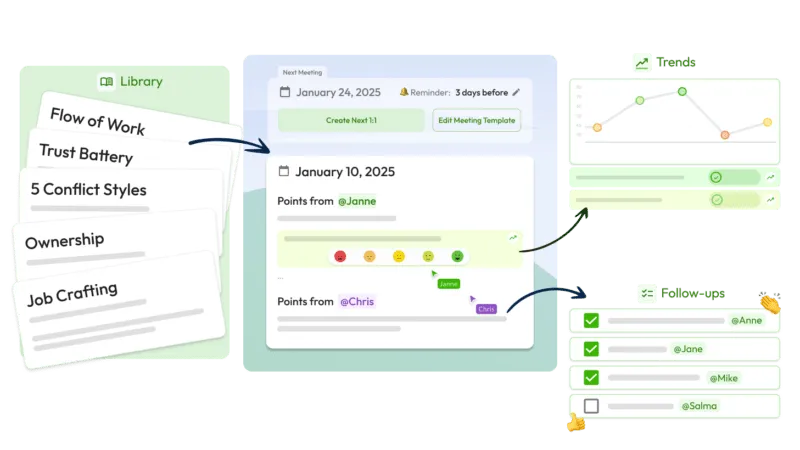 - Leverages artificial intelligence to elevate the effectiveness and efficiency of one-on-one meetings.
