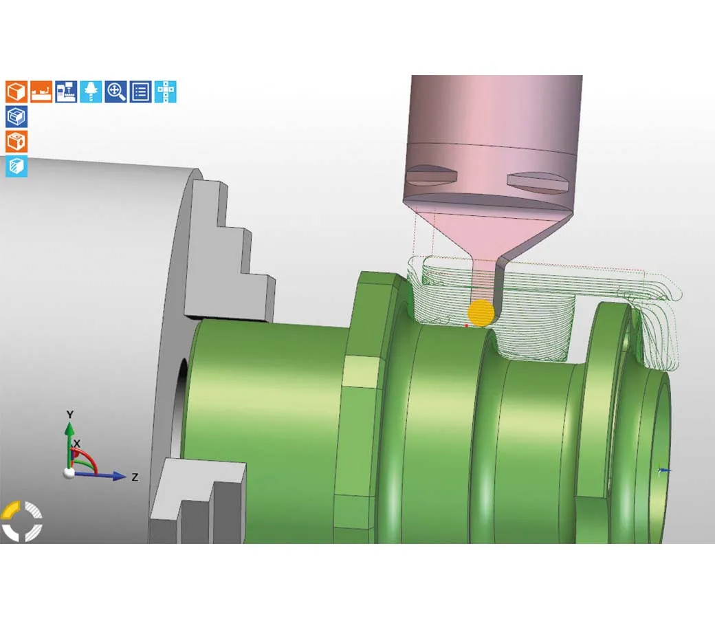 - Depth Retention: The tool remains at the cutting depth when appropriate, moving around the stock with high-feed movements and minimal retraction, thereby reducing cycle times and maintaining cutting efficiency.