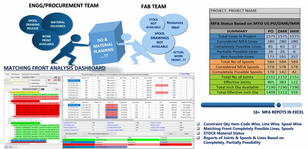 EFA-MFA offers an integrated approach for Engineering and Material Front Analysis, essential for piping fabrication and erection. It streamlines approval processes, supports spool-level readiness analysis, and enables efficient material planning, contractor assignment, and job card creation, ensuring project workflows stay on track.