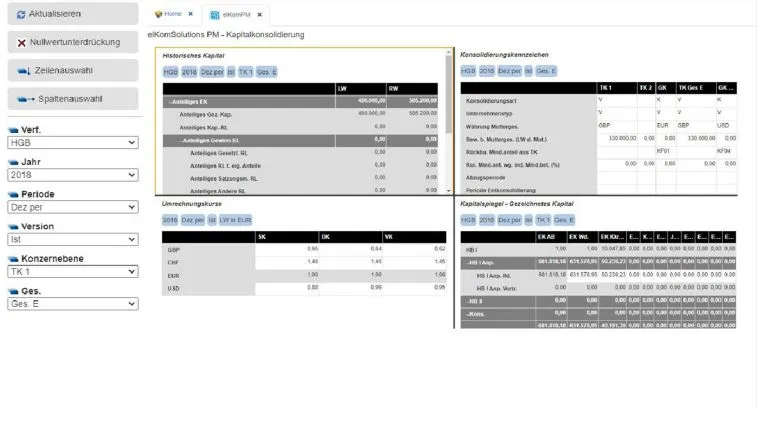 - **elKomKONS: report consolidation: **Receive overviews for consolidation and reporting with simple and efficient up-to-date reports.