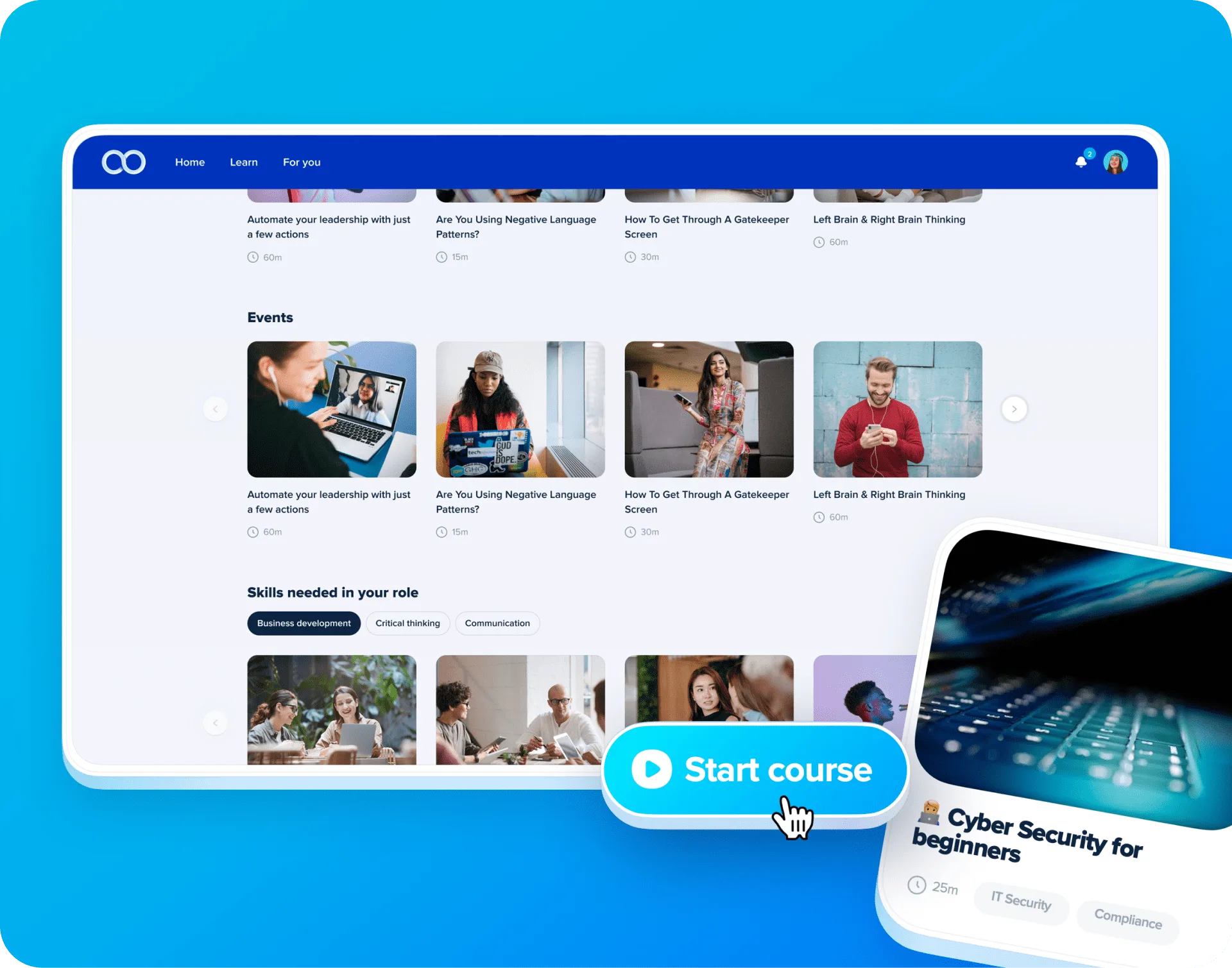 Train, develop, and engage your people with one unified app for everything L&D. Everything you need is in one place, so people development is made simple and easy to manage. Which means you will see value from L&D faster.