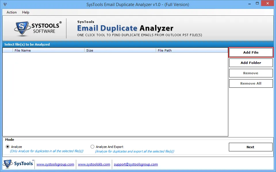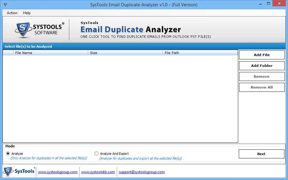 SysTools Email Duplicate Analyzer helps users find, analyze, and remove duplicate emails within multiple Outlook PST files, improving email organization and reducing storage space.