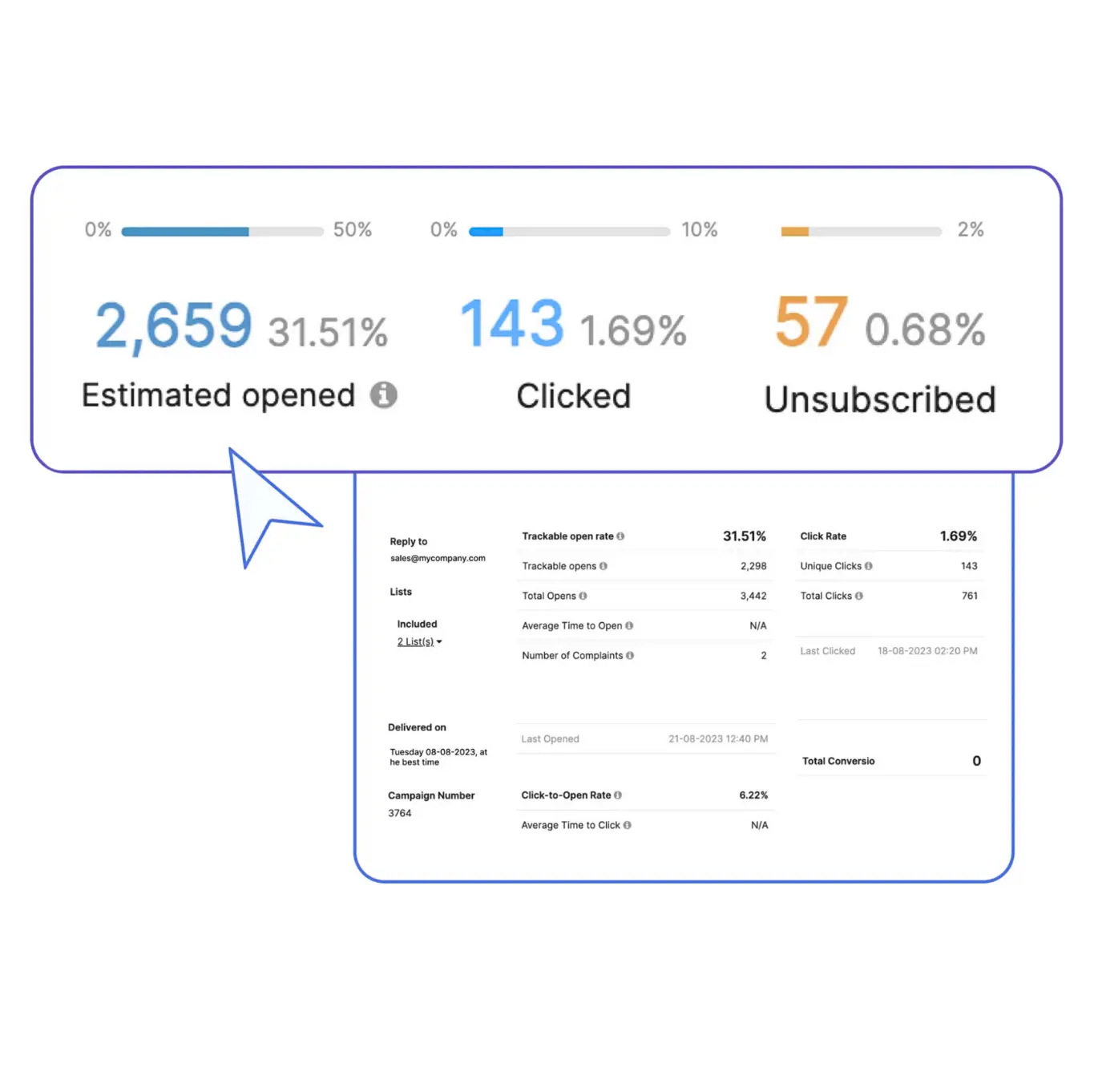 Detailed email analytics in real time Understand what works well for your audience and pinpoint areas of improvement thanks to advanced reporting features.