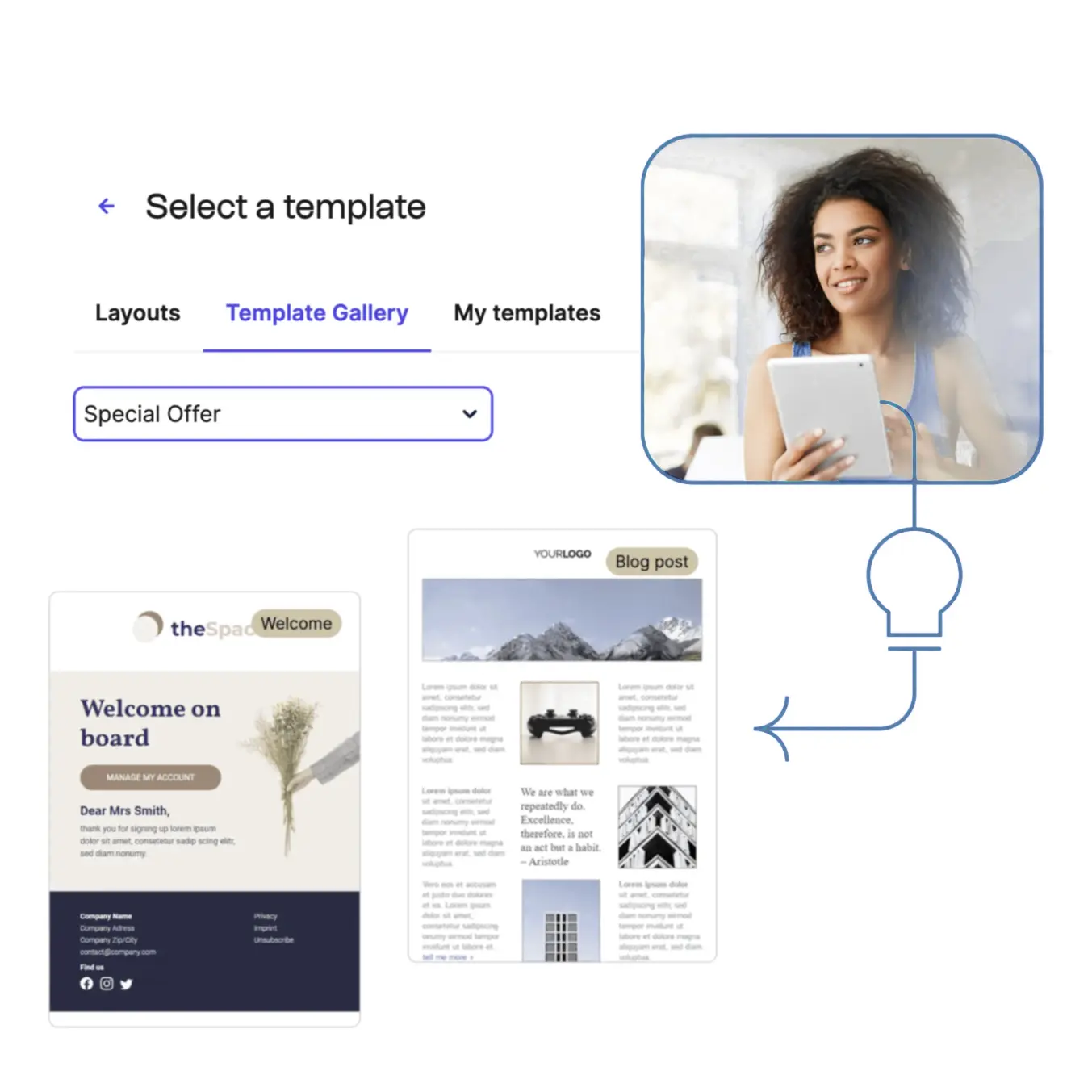 - Choose from 40+ customizable email templates and insert email design elements (text, buttons, images) using drag-and-drop