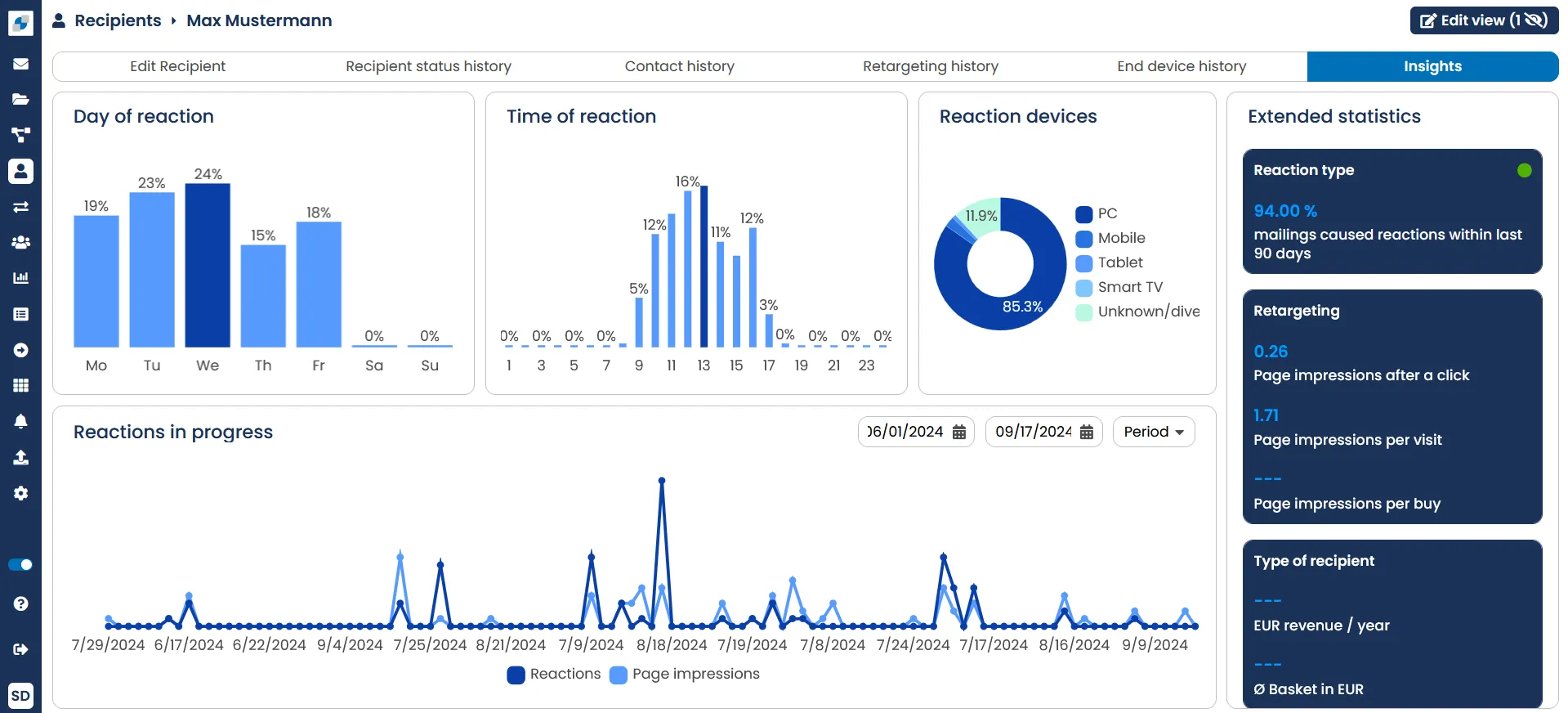 - Recipient statistics: Check the development of your mailing lists