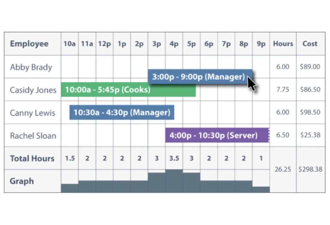 - Drag-and-Drop Scheduling: Easily create and adjust employee schedules with an intuitive interface.