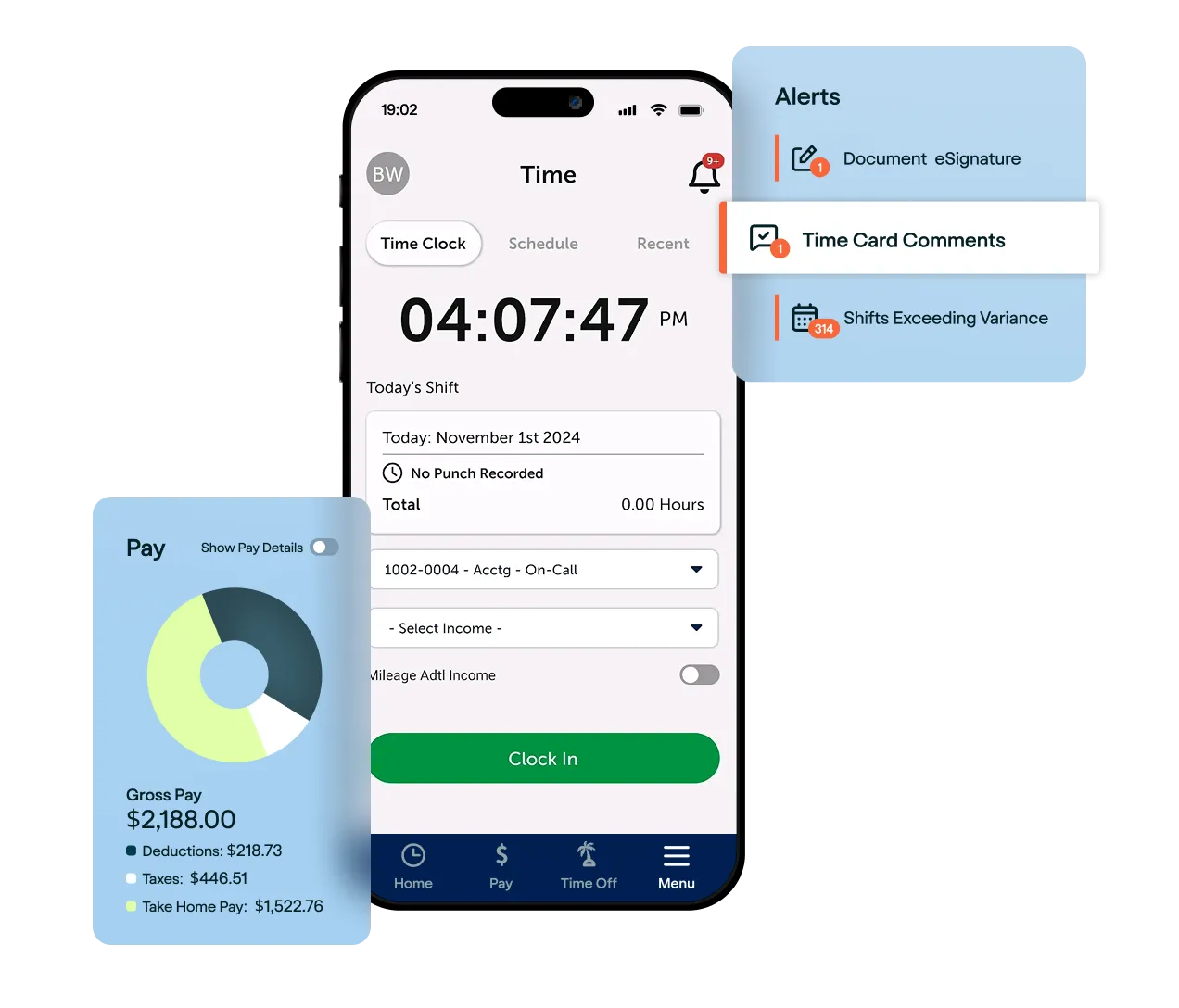 Give employees instant access to clock in, request time off, view schedules, check pay stubs, and review benefits, wherever work takes them.