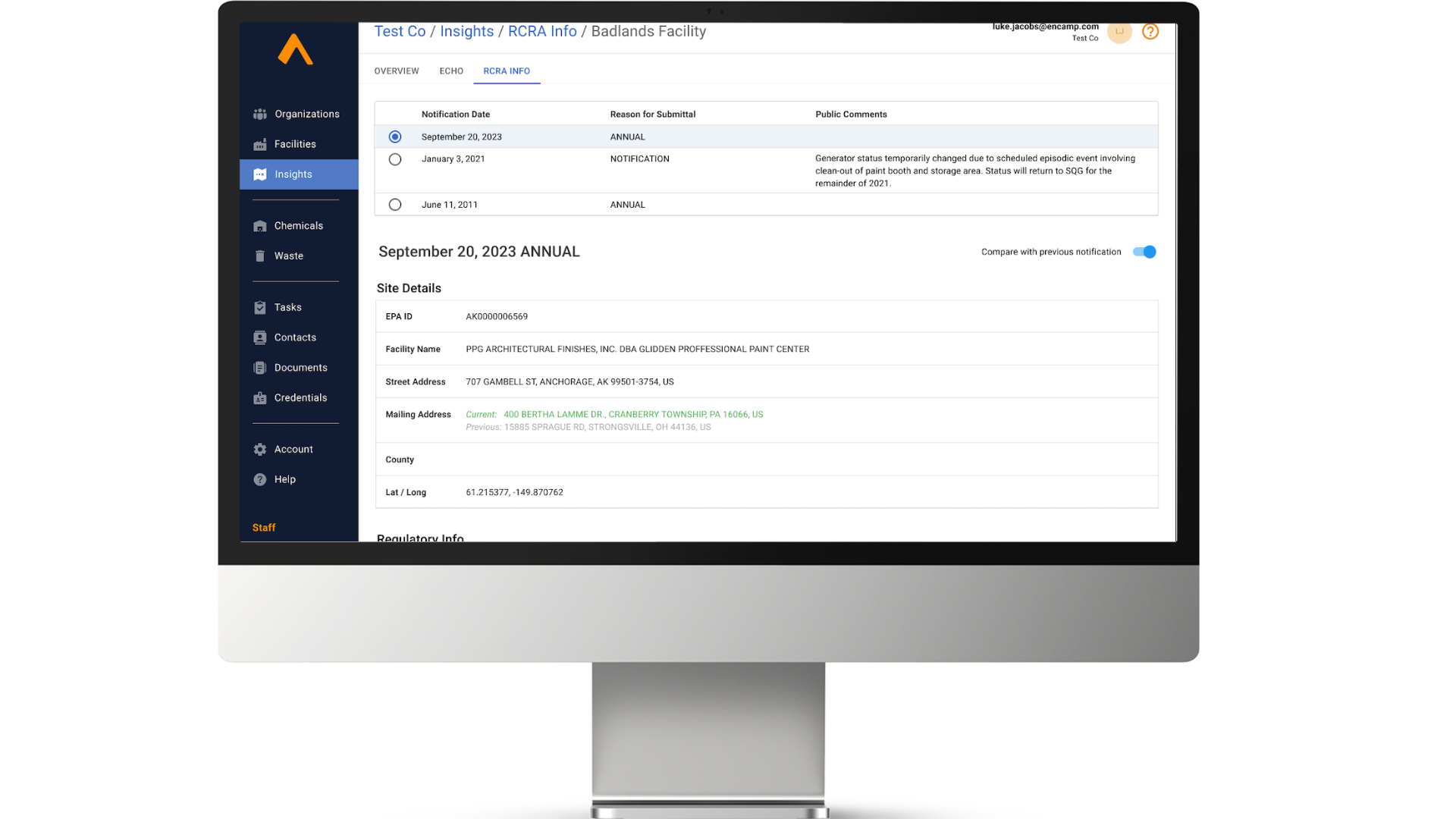 The most advanced environmental platform, the Encamp Intelligence Platform, is the foundation for collecting and consolidating your data. It gives you a regulator’s eye view of your facility data and can help you track, manage, and report on all the states you are in, regardless of complexity.