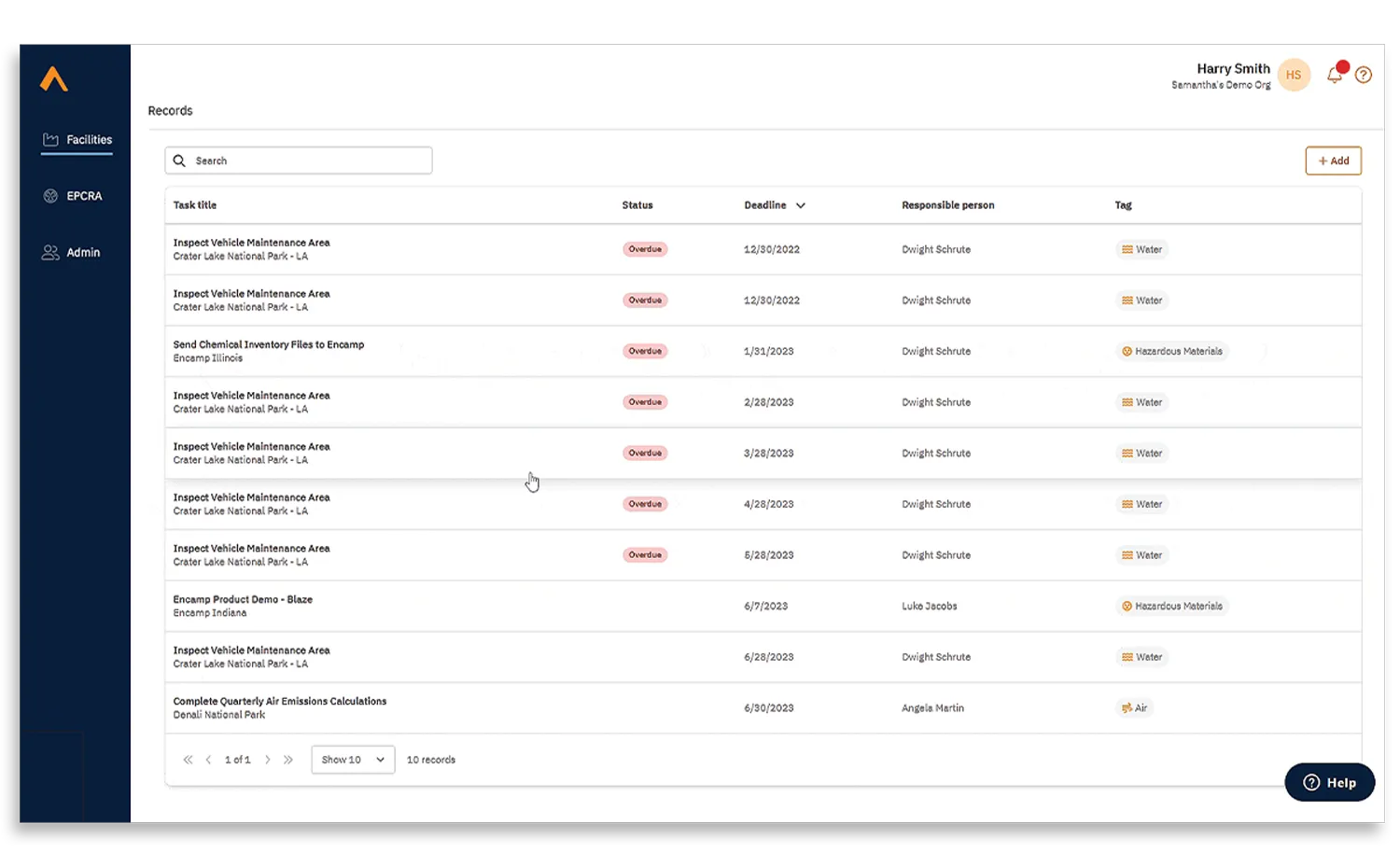 Encamp’s Facility Task Management software helps organizations manage environmental, health, and safety (EHS) obligations with ease. It centralizes tasks across all facilities, automates reminders, and provides real-time visibility into compliance progress. With flexible scheduling, audit trails, and mobile access, teams can ensure nothing slips through the cracks.