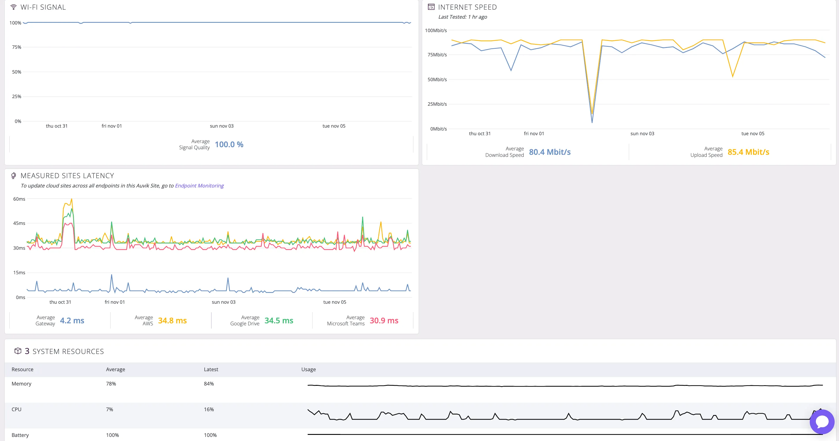 - Network Latency & Uptime Monitoring: Continuously tracks the network latency and uptime of endpoints, ensuring users maintain a stable connection regardless of their location.