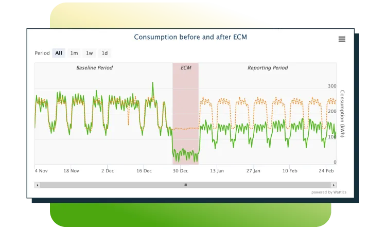 Interval data is the only way to track energy conservation measure (ECM) results with confidence. With complete measurement and verification capabilities, your results don’t just look good, they defend your team, your budget, and your role.