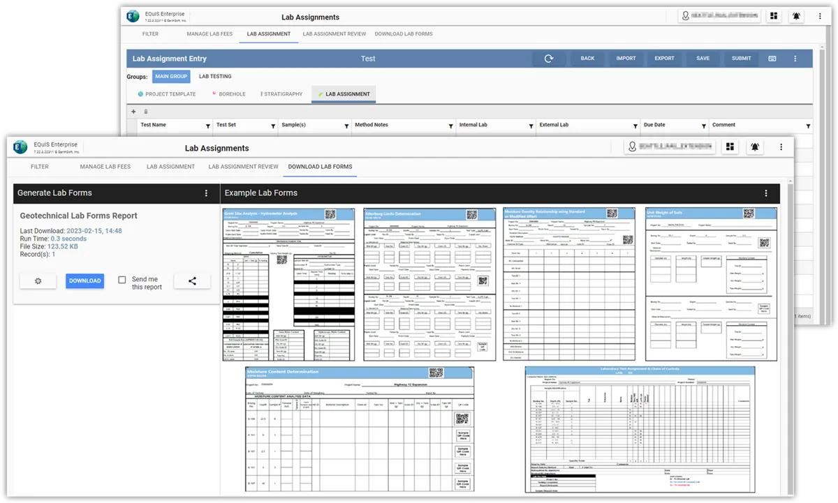 EQuIS Geotech extends the EQuIS software suite to manage geotechnical and environmental data in a single enterprise solution. It integrates mobile field data collection with EQuIS Collect, efficient manual data entry (Web Forms), and laboratory and instrumentation Electronic Data Deliverables (EDDs). EQuIS Geotech stores raw lab data, integrates with GIS/CAD applications, and generates a wide array of configurable reports. It also connects to internal Enterprise Resource Planning (ERP) systems through a REST API, improving data quality and streamlining project workflows for large-scale geotechnical data management.