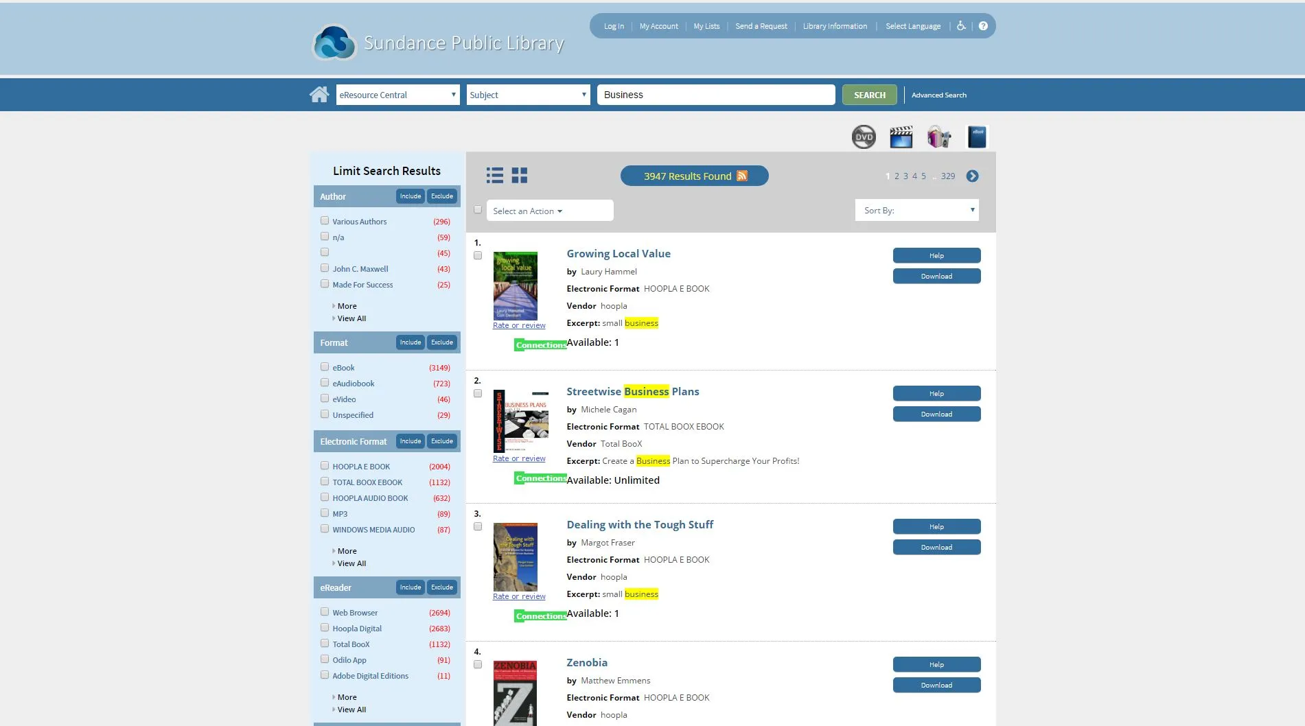 - Interfiles eBooks, audiobooks, and physical items in catalog results