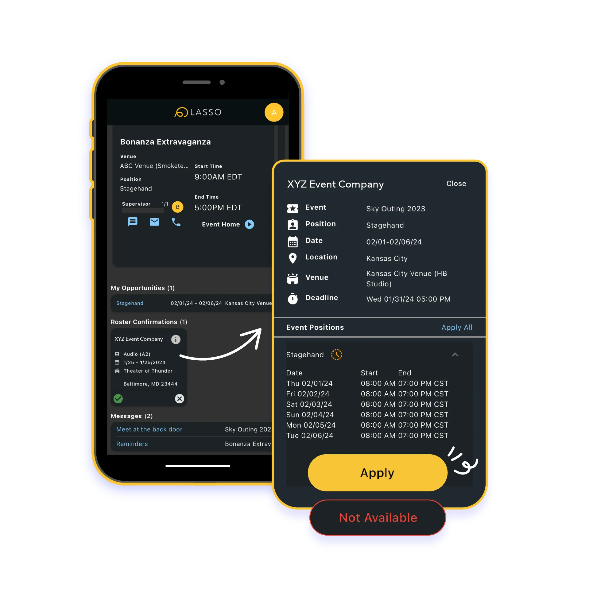 500,000+ Crew on our App Use the tools they’re already using. When you leverage LASSO, your workforce can rely on you for timely updates, clear communication, and find necessary event information in one centralized location.
