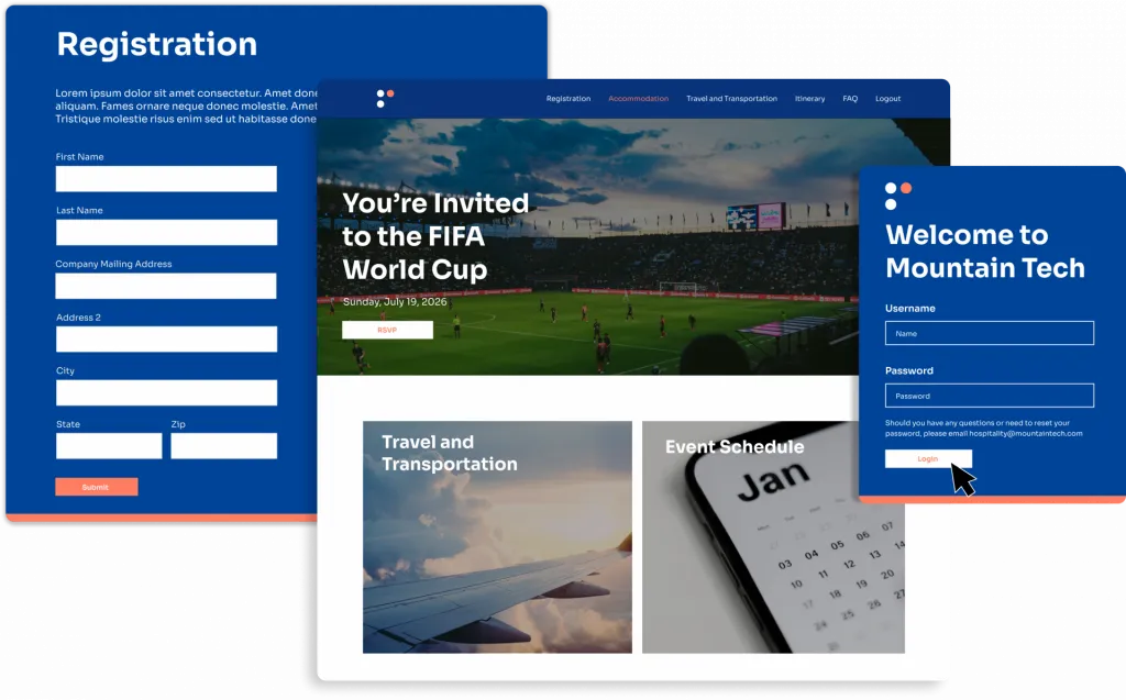 - Registration & check-in: Manage guest RSVPs, check-ins, and create event-specific web pages for a seamless experience.