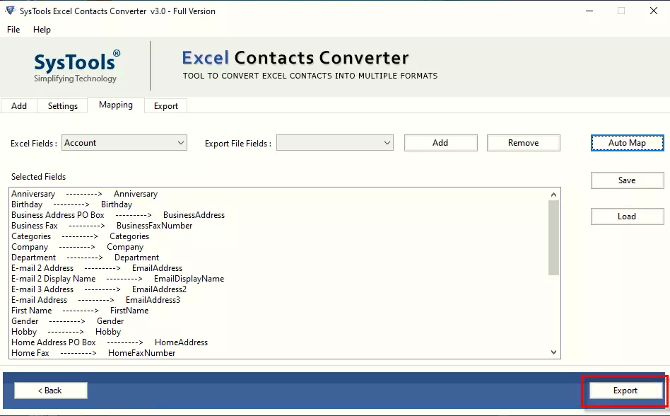- Allows users to map Excel fields to Outlook attributes, ensuring accurate transfer of contact details.