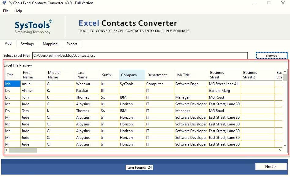 - Offers a preview of Excel file fields and data within the software, allowing users to review and verify the information before conversion.