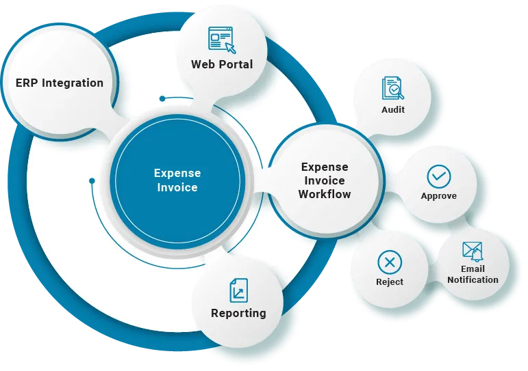 - Approval Workflow: Every expense invoice must be approved, queried, or rejected before payment. The cloud-based system allows invoices to be routed across the organization with full control and visibility.