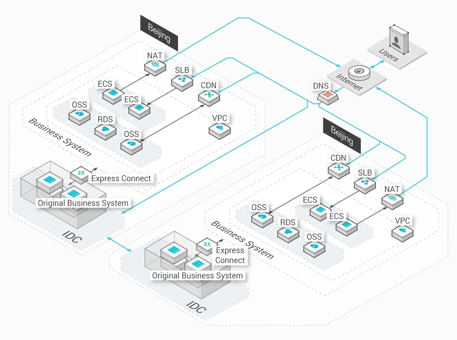 You can connect on-premise data centers to Alibaba Cloud through ISPs or Alibaba Cloud partners. The service enables high bandwidth network connections with reduced costs. Connect through ISPs You can lease a line from your ISP to establish a dedicated connection to Alibaba Cloud. Connect through Alibaba Cloud partners You can work with an Alibaba Cloud partner to establish dedicated connections from your on-premise data centers to Alibaba Cloud. Connect through Express Cloud Connect You can use Express Cloud Connect to establish dedicated connections from your on-premise data centers to Alibaba Cloud. The service provides an all-in-one network experience and lowers your network and maintenance costs.