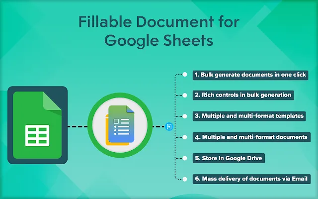 “Fillable Document for Sheets” add-on enhances the popular Fillable Document add-on by utilizing data from existing Google Sheets. Merge data from Google Sheets into Fillable Docs along with Fillable Document’s creative feature of making Google Doc as LIVE FILLABLE FORM with the ability to store data into Google Sheets, generate merged document as Google Document & PDFs, deliver with templated email notifications. Also, Fillable Document can publish the document as fillable form, get the link or embed code to share with your users.