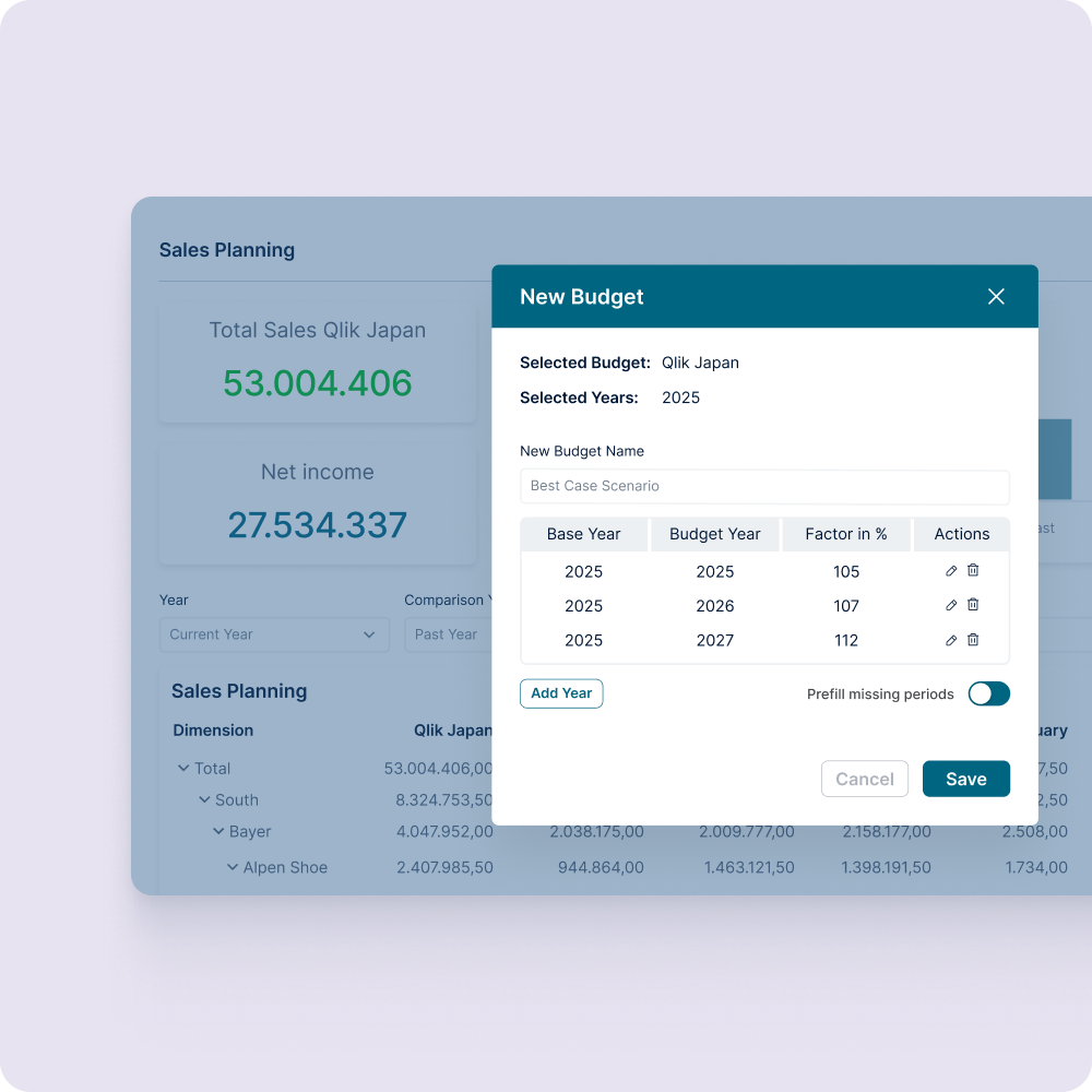 - Qlik Integration: Preserves Qlik investments and enhances planning capabilities with seamless integration.