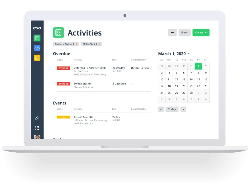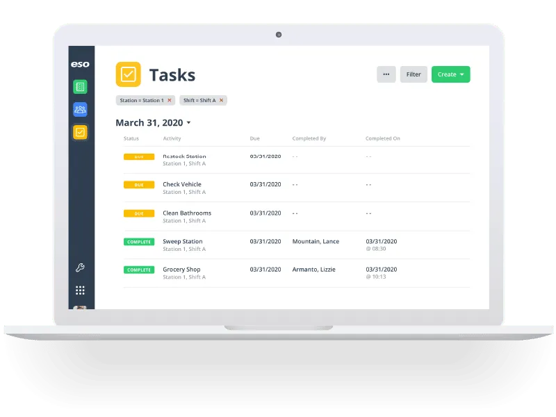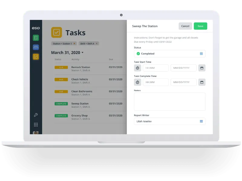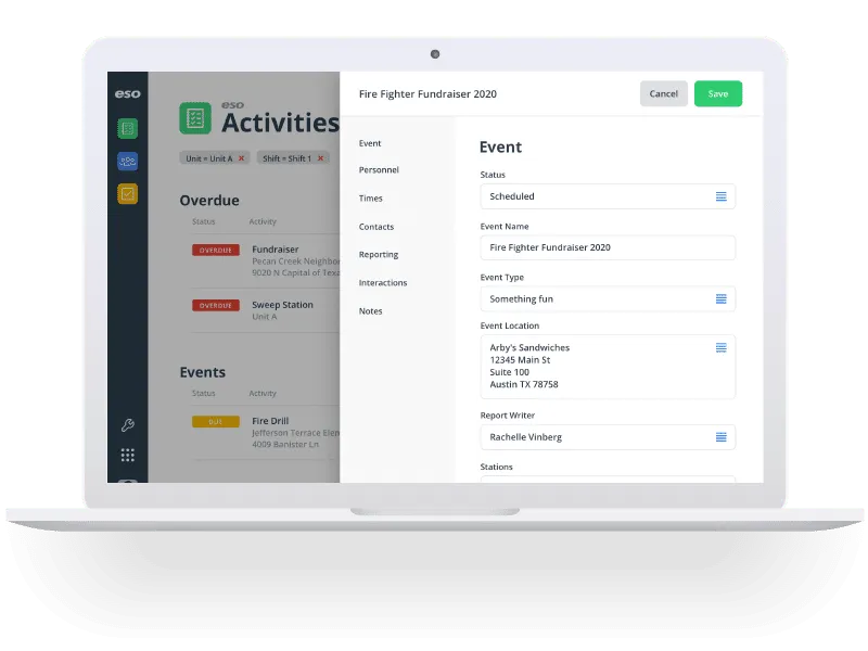 ESO Activities tracks community risk reduction efforts and organizes your department with digital pass down logs and automated task lists.