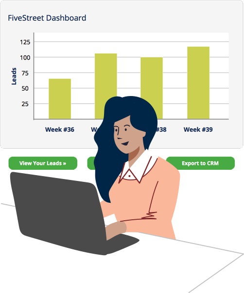 - **Over 100 lead vendors: **Manage all of your leads in one place. FiveStreet’s proprietary lead management and consolidation technology allows us to gather leads from any email-based lead source. We currently connect to over 100 lead sources.