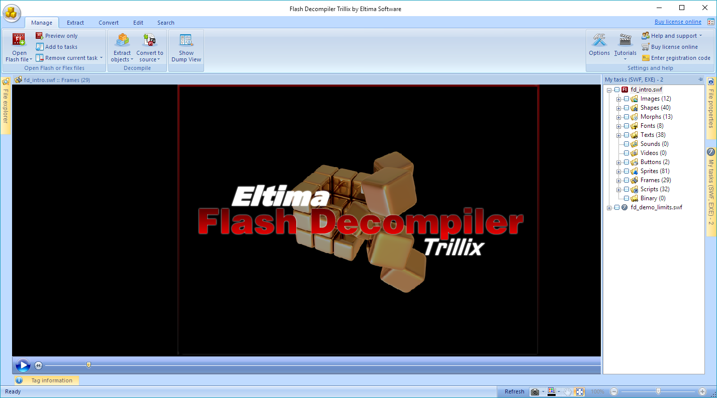 - Supports ActionScript code extraction