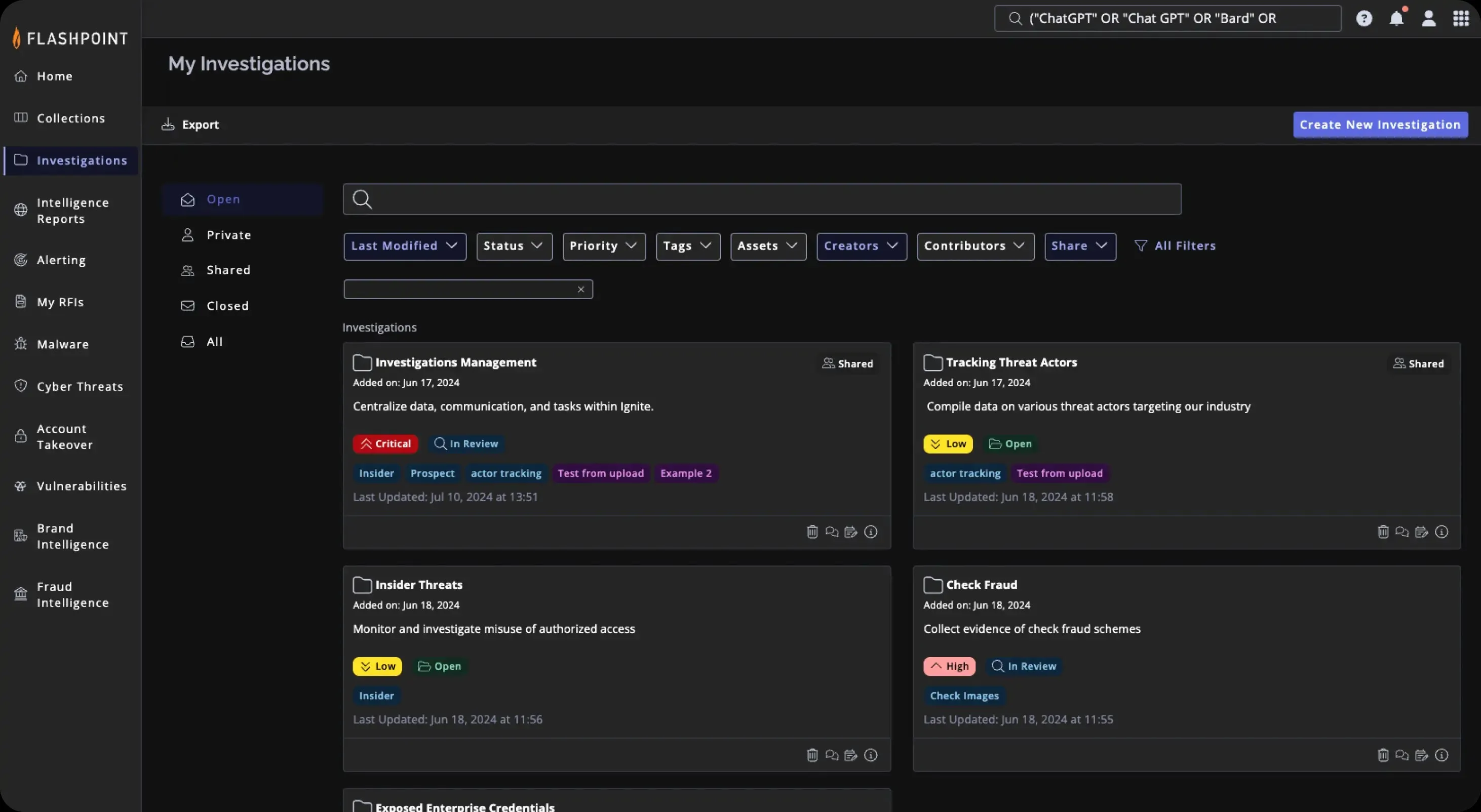 Flashpoint Ignite is a leading threat intelligence platform that harnesses the power of data, human expertise, and automated analysis. It helps organizations identify and remediate risks, taking rapid and decisive action against cyber threats, fraud, vulnerabilities, physical, and national security threats.