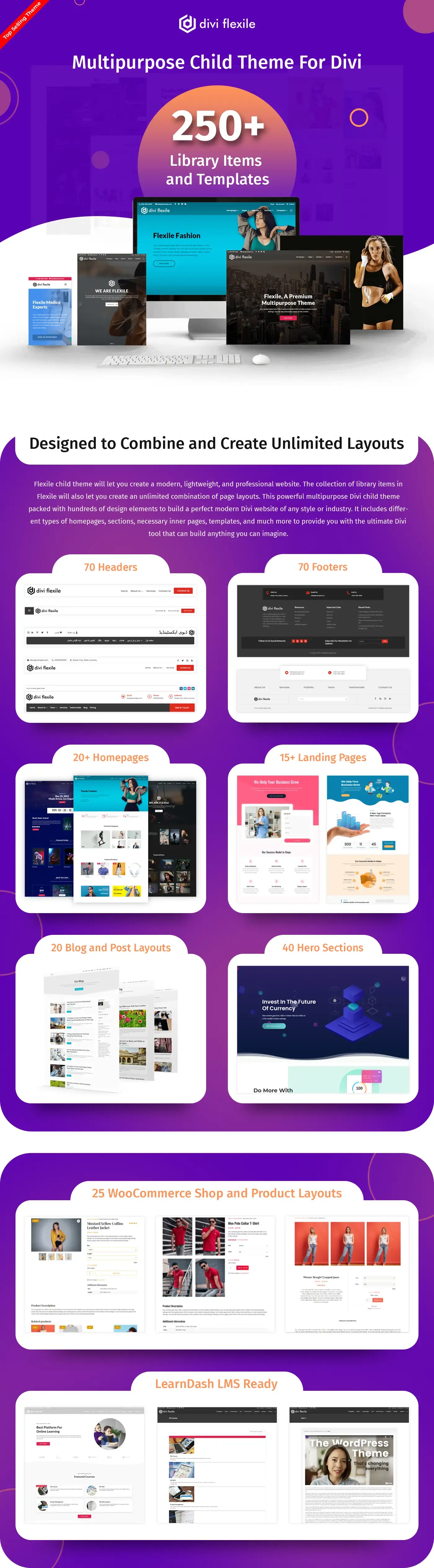 If you’re looking for a versatile Divi child theme that can create any type of website, Divi Flexile is your perfect choice. It’s an all-in-one Divi web design toolkit that meets all your needs. Packed with a variety of Divi layouts, demos, elements, pages, and sections, it allows you to build anything you imagine.
