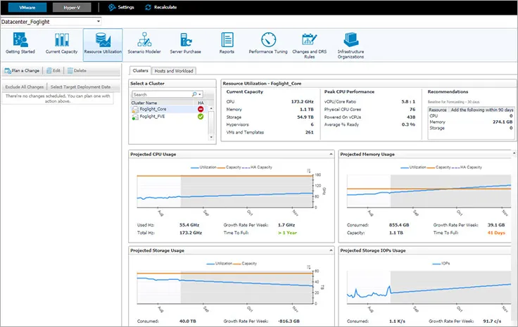 - Simplify capacity planning with real-time data for CPU, memory, and storage
