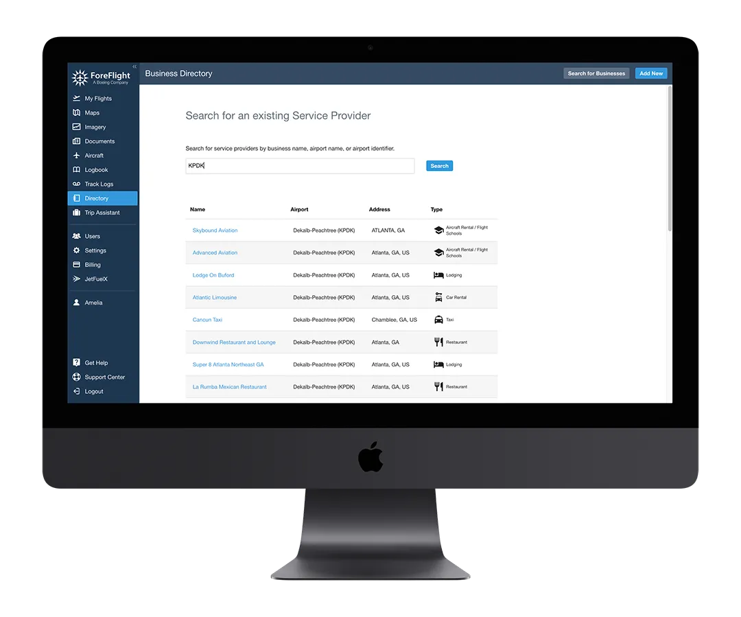 ForeFlight Directory is contained within the ForeFlight Mobile app, giving thousands of pilots researching and planning trips every month direct access to your business.