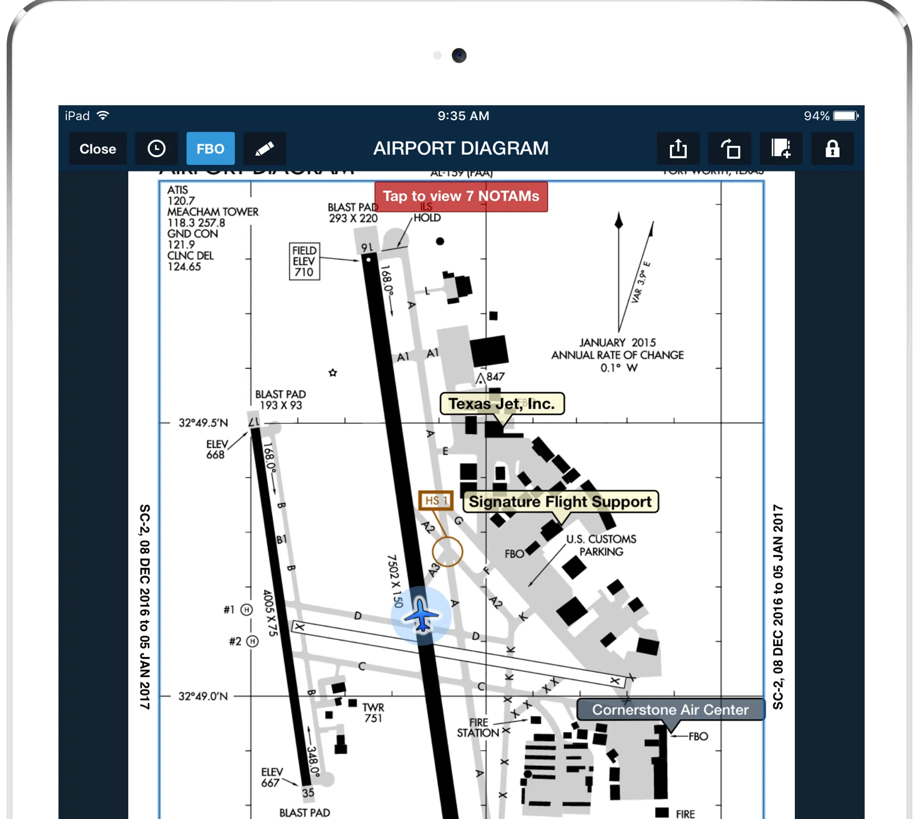 FBO locations are embedded in ForeFlight’s Map view and also in Airport Taxi charts, giving pilots an easy way to pinpoint your business when planning a trip.