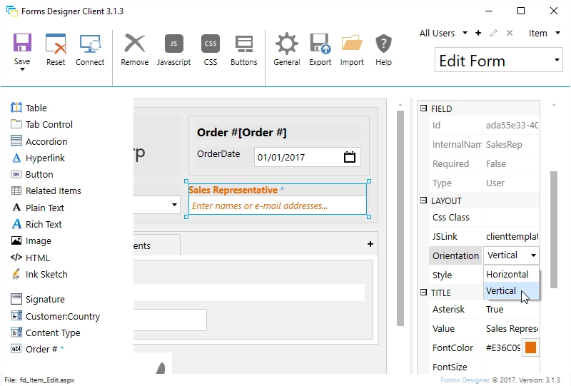 - Document libraries including new forms of Document sets. Forms Designer is fully compatible with any custom or 3rd party columns.