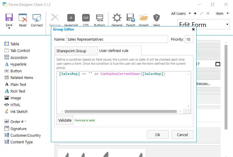 The designed form is fully compatible with standard SharePoint forms, so you can make further customizations with SharePoint Designer.