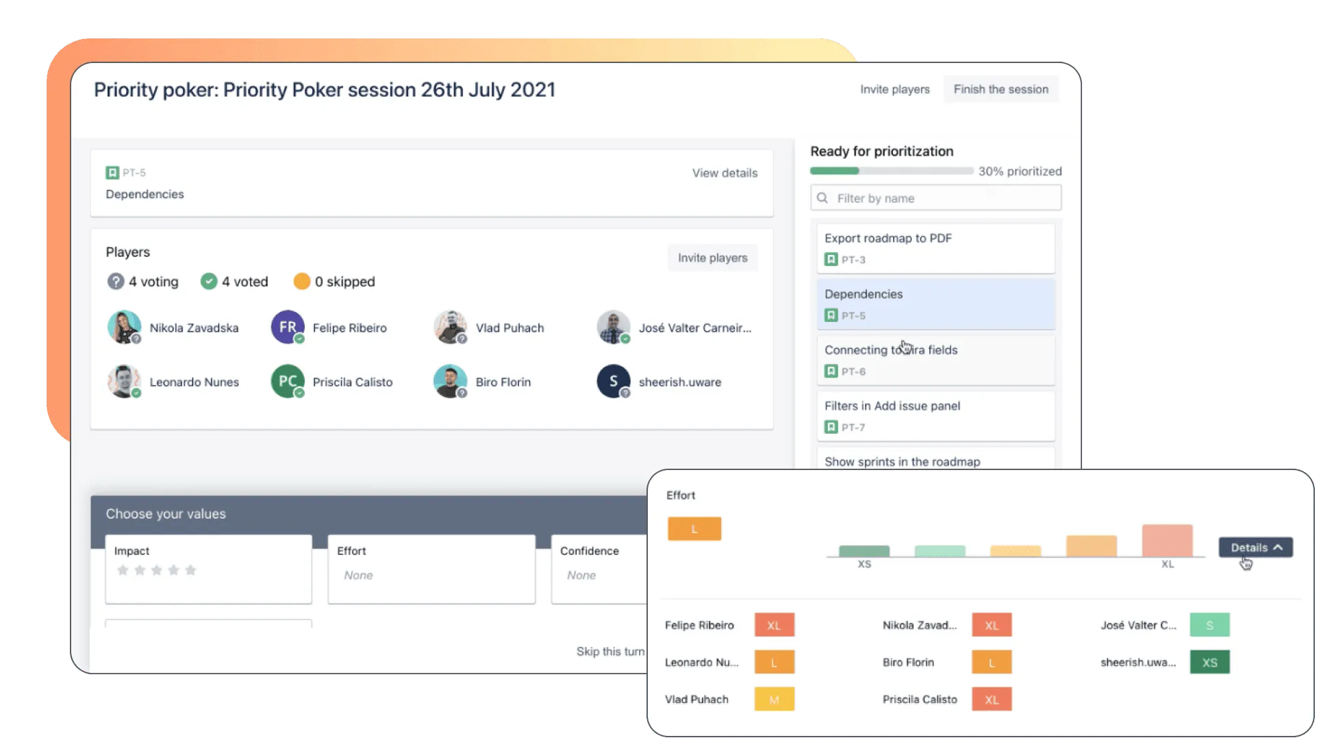 Manage all of your prioritization processes in Jira - where the latest priority updates are automatically projected; metrics are editable in both the issue detail panel and the table view.