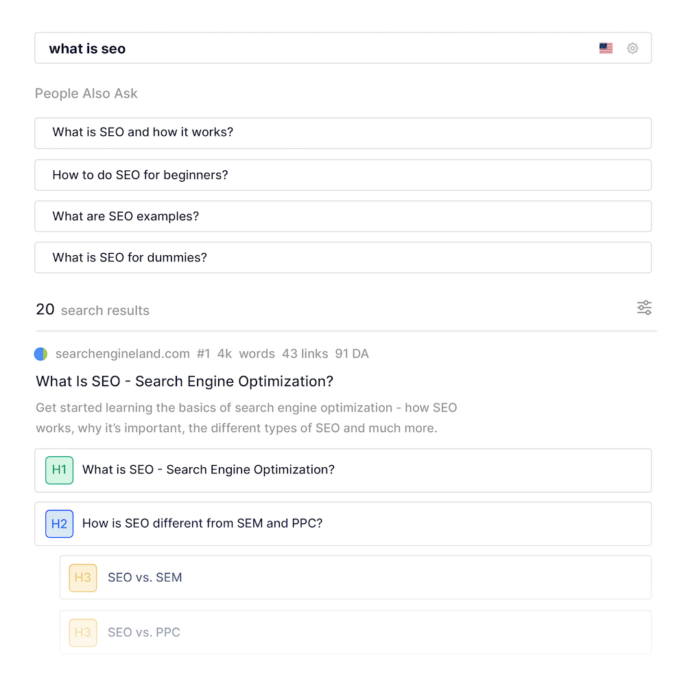 - SERP Analysis: Instantly extract key topics, questions, and stats from top-ranking pages.