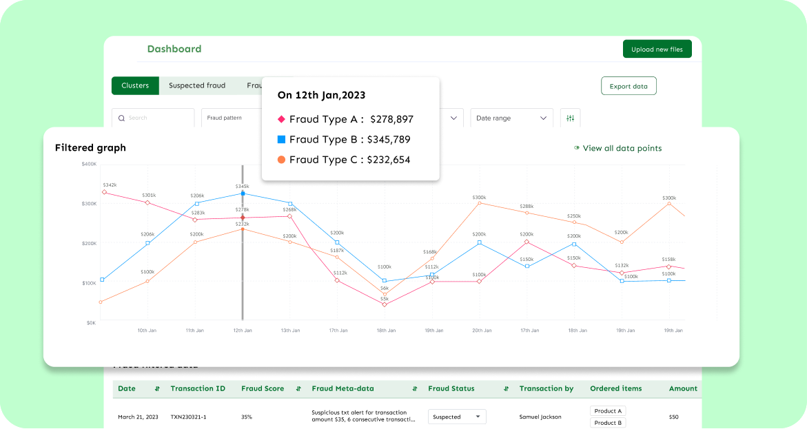 The Fusemachines Fraud Detection comes with simplified workflow tools and analytics to get understand patterns over time, assess risk, and investigate concerning anomalies rapidly.