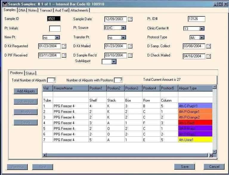 - Track sample and aliquot lineage for traceability of cell lines, tissues, slides, blood products, and more