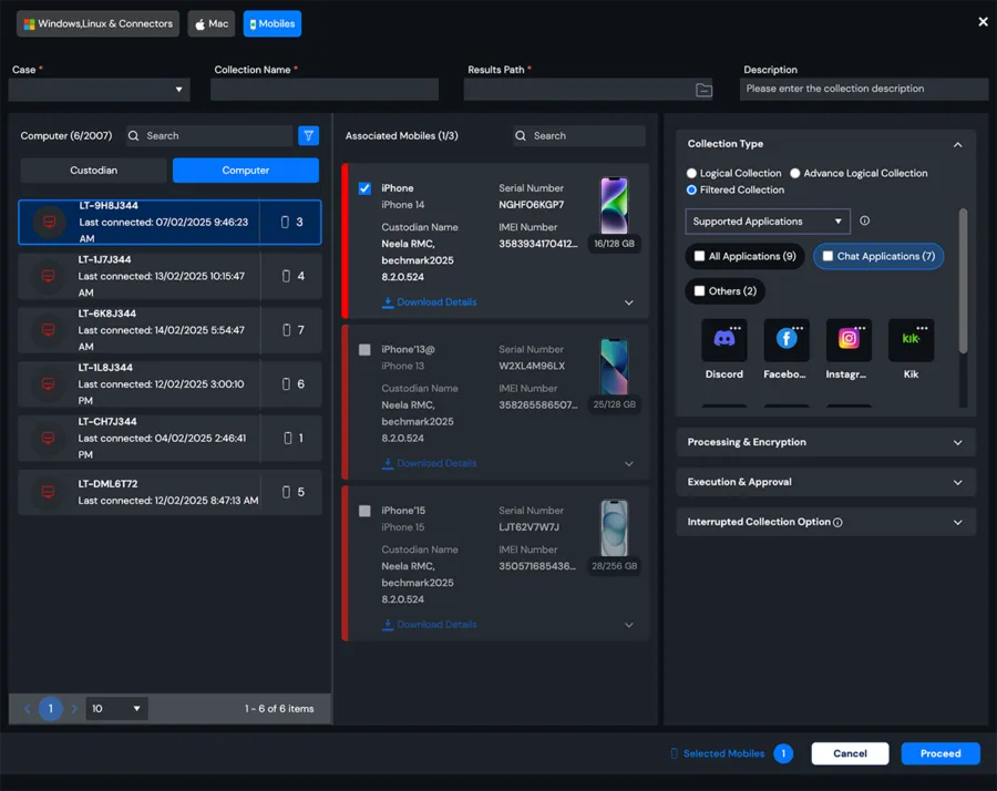Remotely preview and collect mobile device data with Exterro Remote Mobile Discovery.