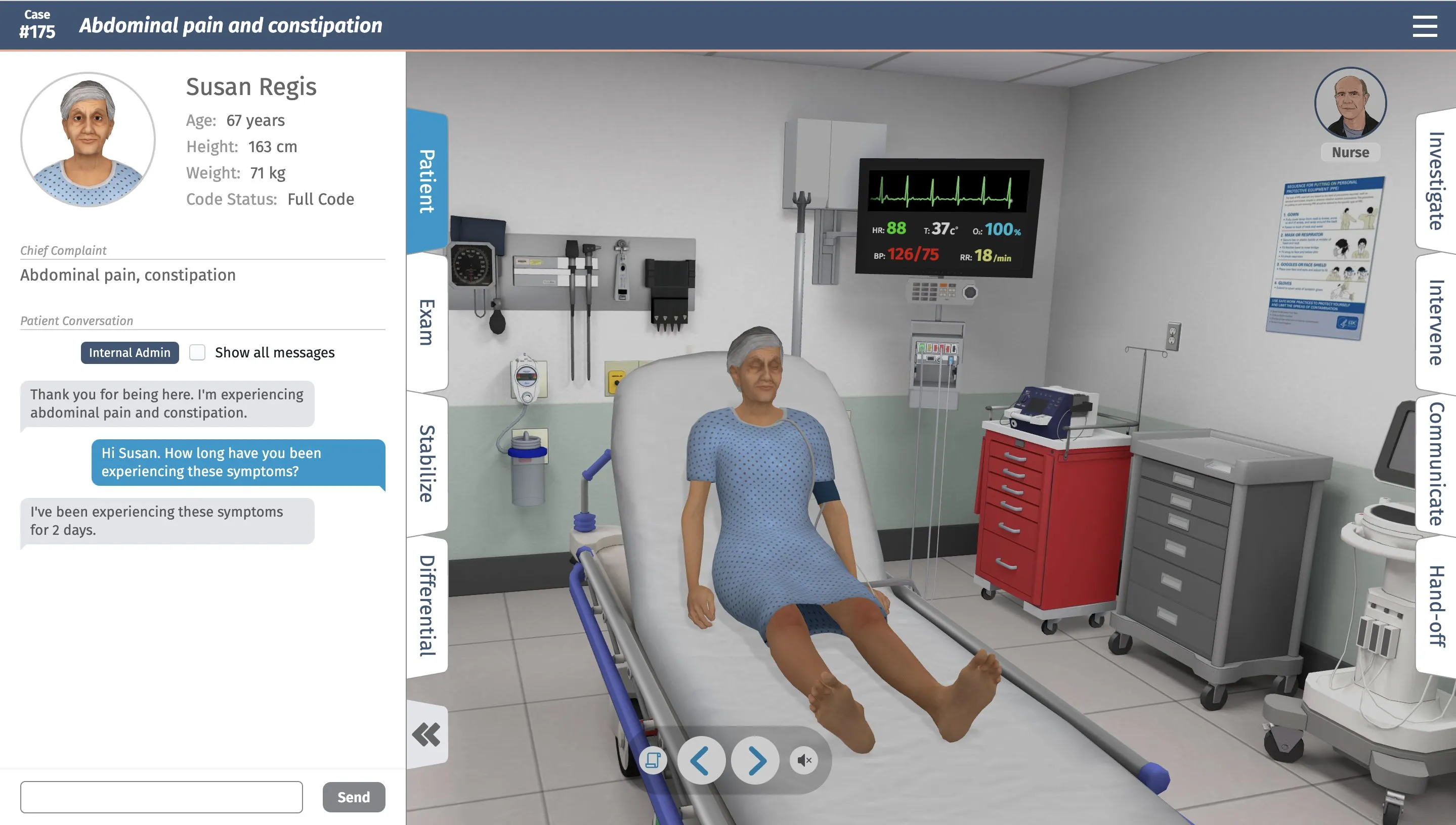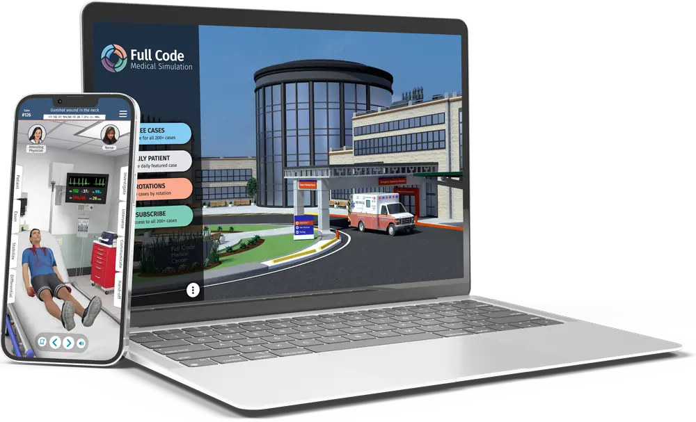The Full Code Simulator is an immersive, mobile-first medical simulation platform designed to enhance clinical decision-making through realistic, interactive case-based learning. Developed by board-certified physicians, it offers a gamified experience that supports both learners and professionals in building diagnostic and treatment skills.