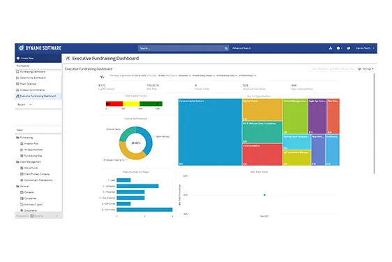 - Visualize progress toward your goal and drill into total capital raised by source, opportunity, and other key metrics, so you can focus your efforts on generating results.