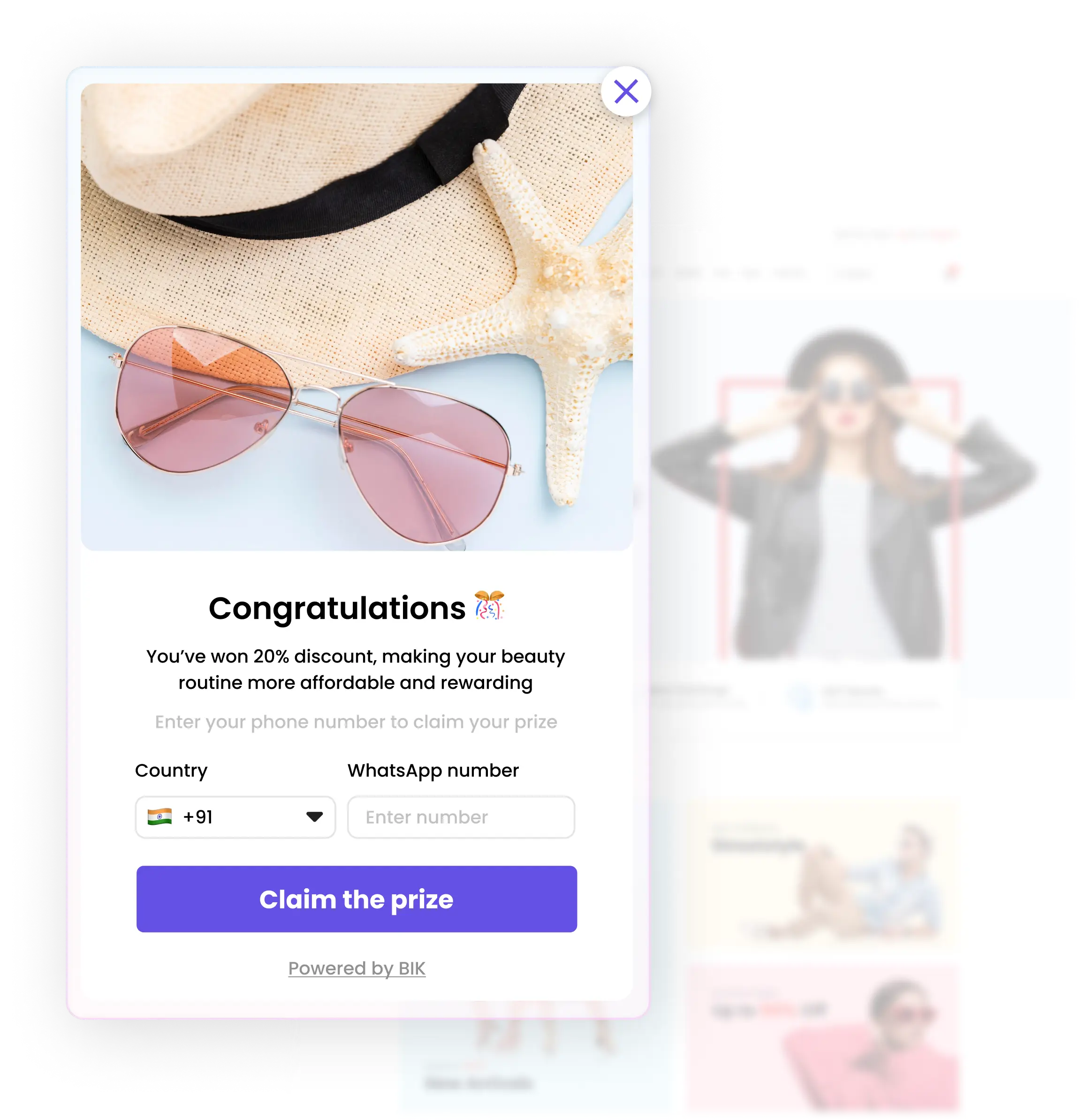 BIK Gamification offers embeddable website widgets—such as spin-the-wheel, scratch cards, and coupon popups—that capture leads, distribute dynamic or static coupons, and drive conversions for e-commerce stores. Widgets are fully brand-customizable, integrate seamlessly with store platforms, and feed detailed analytics into the BIK dashboard so marketers can measure visits, interactions, rewards issued, new leads, and conversions. The solution is designed to improve lead acquisition, lower customer acquisition costs, and increase store conversion rates for DTC and e-commerce brands.