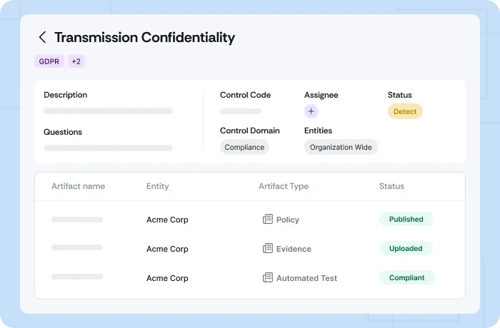 Reuse compliance controls across frameworks. Reuse controls and evidence across all standards. Minimize duplication, reduce effort, and accelerate compliance.