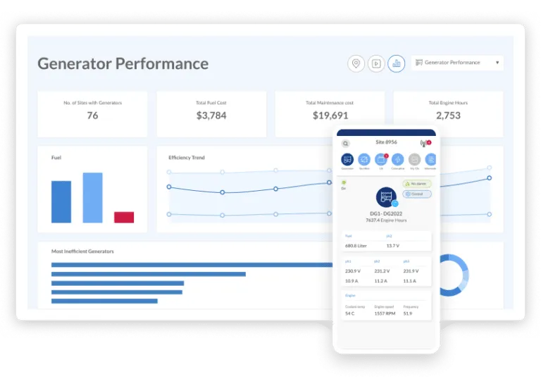 Monitors diesel and hybrid generators to track KPIs, detect theft and faults, and provide alerts, reporting, and remote control.
